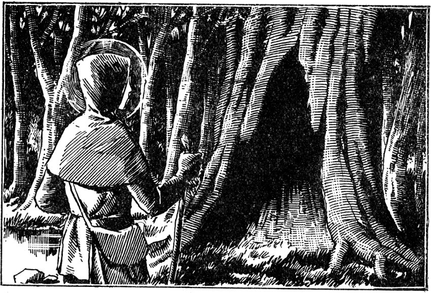 Enfants d’au­jourd’­hui, nour­ris de ciné­mas et d’illus­trés, vous rêvez d’ex­tra­or­di­naires aven­tures ; mais les petits d’a­lors, enten­daient plu­tôt par­ler des grands moines aux­quels l’An­gle­terre, l’Ir­lande, la France et la Ger­ma­nie devaient non seule­ment leur Foi, mais l’ins­truc­tion et la Science ; cela les ouvrait au recueille­ment et les atti­rait au désert. Autre­fois, Mar­tin-éco­lier, vou­lait être ermite ; à douze ans, Simon Stock s’é­vade et se cache dans les bois. Près d’une petite fon­taine il trouve un chêne creux dont il fait sa cabane. Il vit là trente-trois ans, et ce n’est pas banal, vu son nom ou sur­nom : « Stock » : tronc, tas de bois. Nous disons nous aus­si un stock de bois.