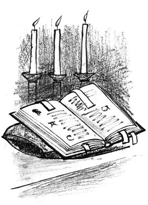 Les prières de la messe : Le missel d'autelLe Père — Nous avons par­lé de tous les objets qu’on pose sur l’au­tel et qui font com­prendre qu’il est la table d’un sacri­fice : la croix enca­drée de cierges et le calice avec la patène. Il nous reste à par­ler d’un der­nier objet très impor­tant qui a sa place sur l’au­tel. Jacques, c’est un objet qui inté­resse par­ti­cu­liè­re­ment le ser­vant de messe…