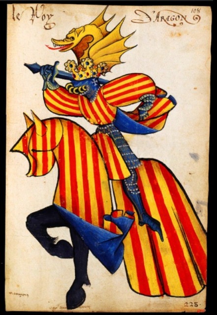 C’était un grand garçon, mince et souple, dont la douceur n’excluait ni la vaillance ni l’adresse. Ainsi, le jour même, en plusieurs jeux et combats, il avait fait triompher l’étendard d’Aragon à raies rouges sur fond or. Maintenant, dans la lice, c’était une somptueuse cavalcade de seigneurs aux chevaux superbement caparaçonnés.