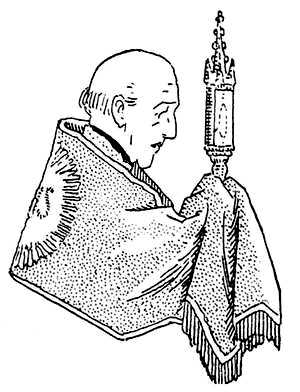— Le prêtre la met pour donner la bénédiction du Saint Sacrement.