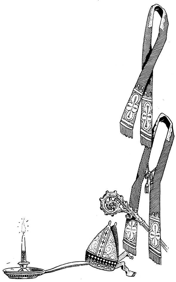 — La mitre est un ornement d’honneur, un signe de puissance, et la crosse, tu le comprends toute seule, symbolise la houlette du pasteur. L’évêque est le pasteur de toutes les âmes de son diocèse qu’il doit conduire à Dieu. Reste encore le bougeoir à long manche que l’on tient allumé près de l’évêque, quand il lit, en signe d’honneur… Tu devines bien, Colette, que ces insignes, comme le vêtement, les bas, les gants violets de l’évêque, lui sont donnés pour révéler, aux yeux des fidèles, la grandeur de son caractère épiscopal. Mais, ces signes extérieurs, si utiles à notre pauvre nature humaine, qui a un tel désir de voir, ne changent rien à la valeur intérieure et au caractère du prêtre qui en est revêtu.