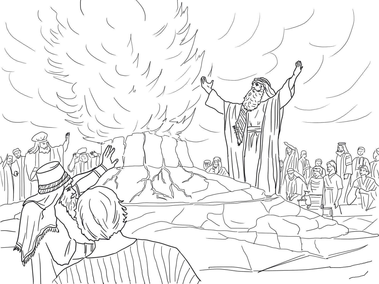 Alors une multitude de gens grimpèrent au mont Carmel pour assister à un pareil spectacle. Les idolâtres eurent beau supplier leur faux dieu, tout fut inutile, mais à peine Élie eut-il prié, que le feu du ciel dévora son sacrifice.