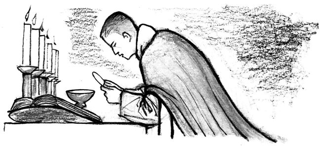 Le Père — Oui, mais nous avons appris, dès le début, que le prêtre représente Jésus. Regarde de près ton missel au moment de la consécration. Le prêtre raconte ce qui s’est fait à la Cène et, au fur et à mesure, il fait lui-même les gestes que le récit attribue à Jésus : il prend le pain dans ses mains, lève les yeux au ciel, bénit. Si bien que, lorsqu’il dit : « Ceci est mon Corps », on comprend que c’est Jésus qui le dit, par la bouche du prêtre, sur l’hostie que le prêtre tient entre ses doigts. Or Jésus est tout-puissant. Sa parole a créé le monde. Et quand il dit : « Ceci est mon Corps » nous y croyons, tout simplement. C’est cela, la foi : croire Jésus sur parole.