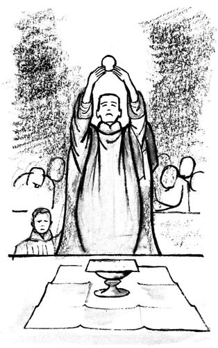 Le Père — Pas autant qu’on le croit. On ne fait l’élévation, après chaque consécration, que pour permettre aux fidèles d’adorer aussitôt, en les regardant, le pain et le calice consacrés. Celle qu’on appelle — malheureusement — la « petite » élévation, est beaucoup plus importante. Elle termine la grande Prière de la messe par une offrande solennelle, que tous les fidèles doivent approuver et ratifier par leur Amen. C’est alors que se fait la grande offrande du pain et du vin, ou plutôt de Jésus-Christ immolé et glorieux. Et en disant Amen, nous disons que cette offrande est bien la nôtre, et que nous nous offrons nous-mêmes avec elle.
