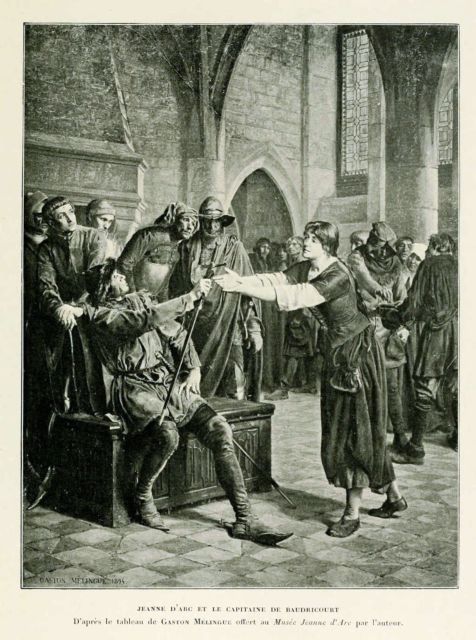 Au château, Baudricourt ne refuse pas de la recevoir. A‑t-il réfléchi ? A‑t-il, lui aussi, reçu un appel secret ? Grave, il écoute l’enfant lui redire : « Apprenez, Messire, que Dieu m’a fait maintes fois savoir que je dois aller vers le gentil Dauphin et le faire sacrer roi de France. Donnez ‑moi des hommes d’armes, j’irai à lui et,avec son armée, je délivrerai Orléans ! »