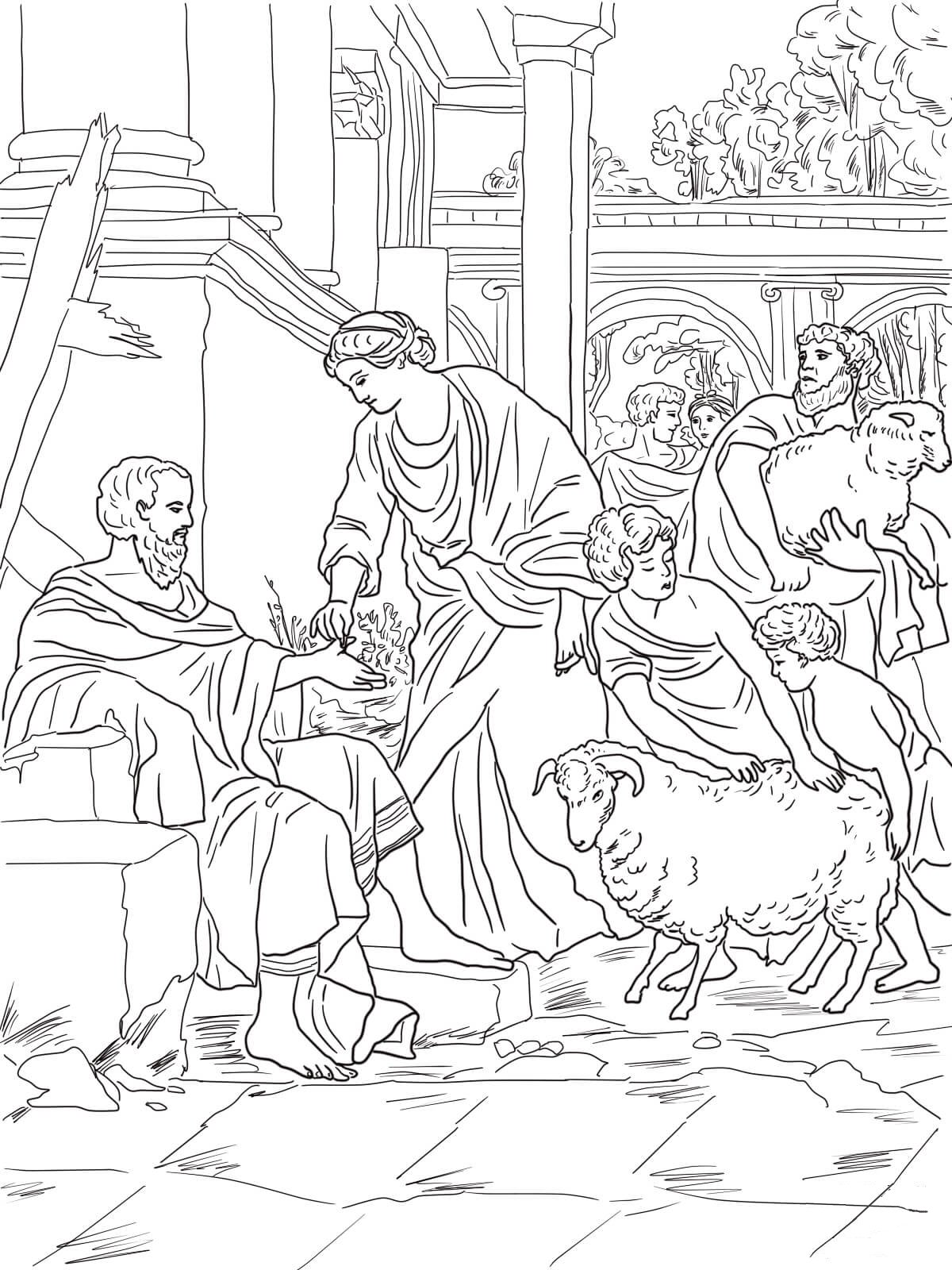 — Là-bas,… loin, très loin. Cet homme s’appelait Tobie. Avec un grand courage, il est resté fidèle à Dieu, charitable envers les autres Israélites, qu’il ensevelissait quand ils mouraient, malgré la défense de Salmanasar.