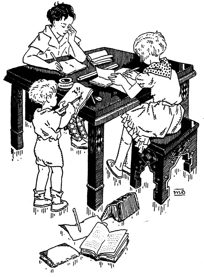 Au matin, Colette et Jean sont à l’étude ; leur petit frère met leur patience à rude épreuve.