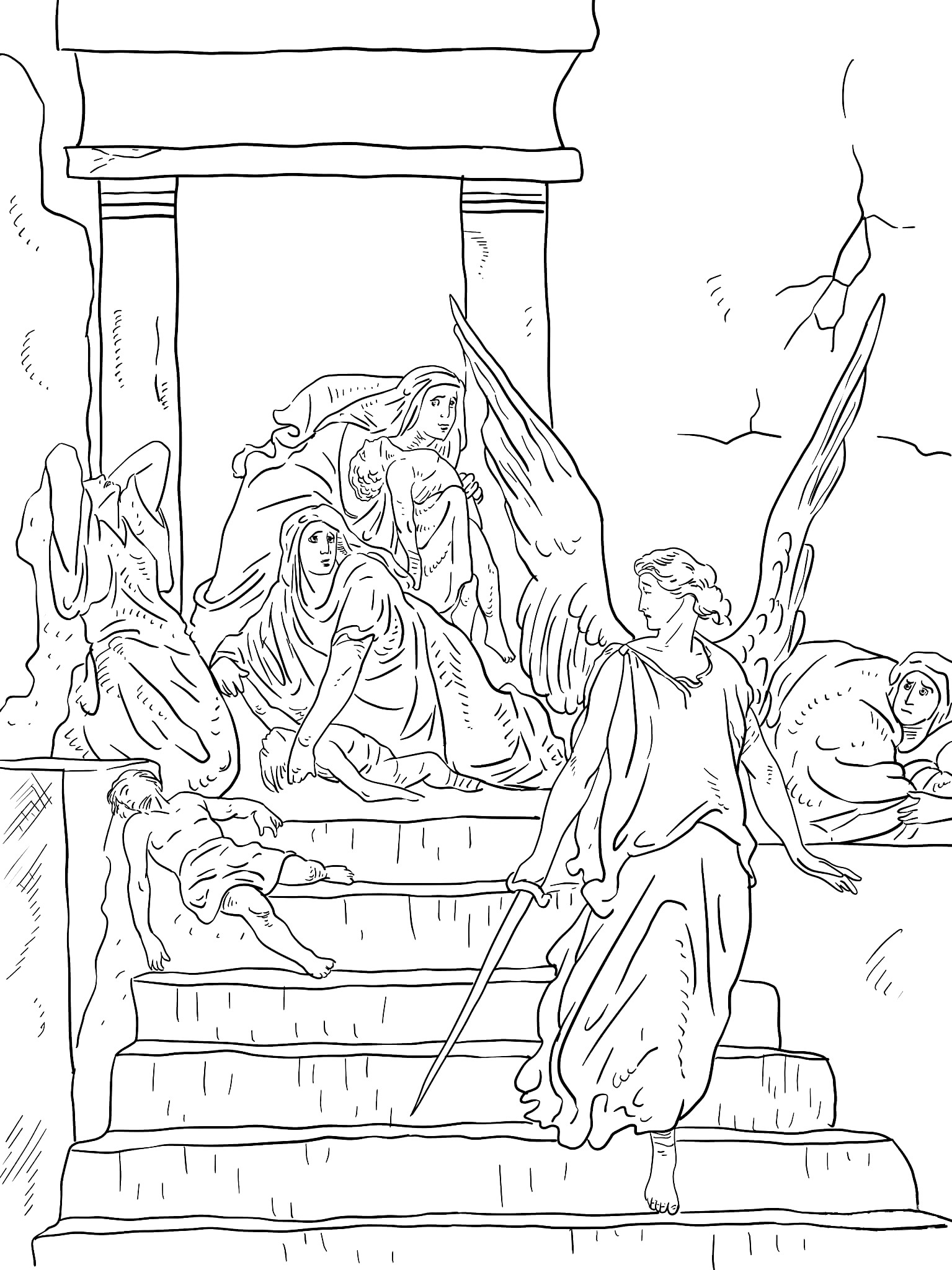 Coloriage de l'Ancien Testament - extermination des premiers-nés des Egyptiens