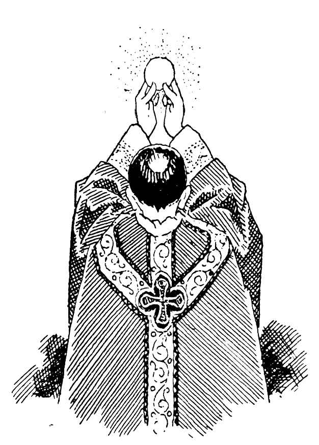 Encore un léger coup de sonnette. Cette fois nous touchons à la Consécration. Je fais de nouveau le signe de la Croix sur le calice et l’hostie, je demande à Dieu qu’ils deviennent pour nous le Corps et le Sang de Jésus, son Fils Bien-Aimé et, penché sur l’autel, dans le recueillement le plus profond, je renouvelle la Cène.