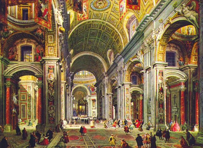 — Comme toujours, l’Église a permis de rechercher, de transformer ce qui était beau. Elle a même demandé à de grands artistes, à de vrais génies, s’inspirant de l’antiquité, de mettre leur talent à son service. Michel-Ange a, comme on dit, « jeté dans les airs la coupole de Saint-Pierre de Rome, » dont la basilique avait été commencée par Bramante en 1514. Raphaël, Léonard de Vinci, ont peint des toiles magnifiques ; tu en as vu plusieurs. C’est à la même époque que Palestrina et Vittoria ont composé cette belle musique symphonique que nous avons entendue quelquefois ici, et même en France. Il y eut aussi les grands écrivains de la Renaissance. Malheureusement cette époque se laissa gâter par son inspiration païenne. Même au point de vue artistique, la mode fit sacrifier de très belles choses qui existaient déjà, pour les transformer au goût de la Renaissance, souvent païen, comme nous l’avons dit, très riche et trop chargé. Te souviendras-tu de cela, Colette ?