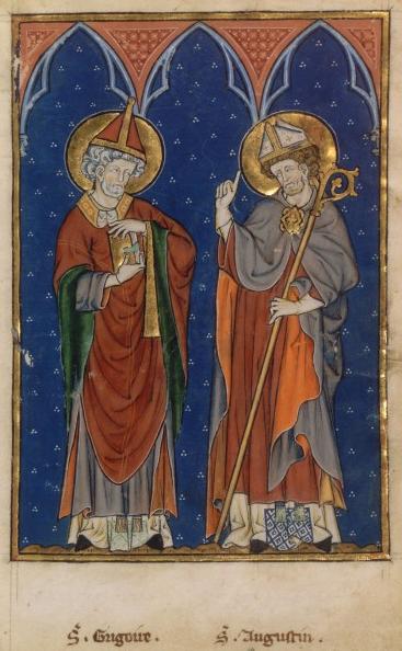 Saint Grégoire le Grand envoyant saint Augustin évangéliser les Angles et les Saxons. Livre d'images de Madame Marie. Hainaut. XIVe.