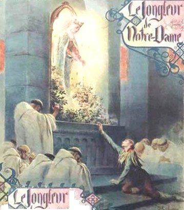Virgo autem suavissima histrionem inclinebat, mais alors la Vierge très tendre se pencha sur le baladin, et serica tenue frigus aestuanti ventilavit, et de sa robe de soie l’éventa. Quo viso, recessit Prior miratione refertus, ce qu’ayant vu, le Prieur se retira discrètement, le cœur rempli d’admiration, et décidé, pour l’avenir, à placer moins haut le savoir…