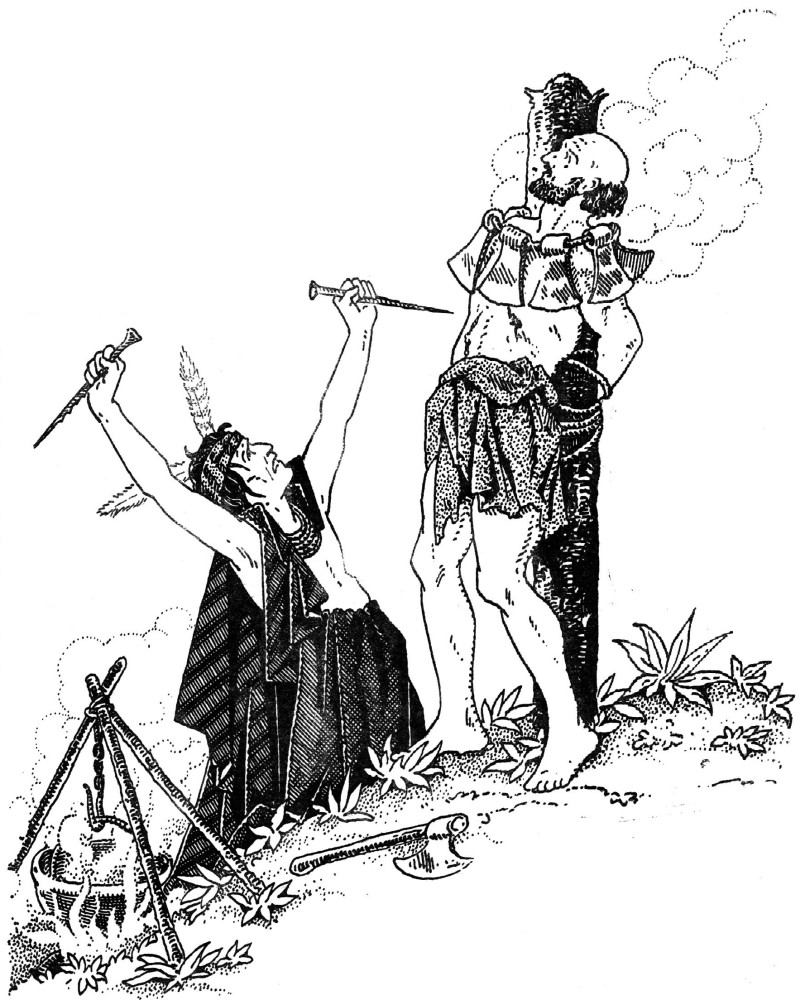 — Attendez. Les Iroquois sont partagés entre l’admiration et la haine pour ces étrangers qui pénètrent chez eux. La haine domine bientôt et les missionnaires vont être martyrisés. Attaché au poteau, le Père de Brébeuf ne cesse de prêcher « tandis qu’on le pique avec des alènes rougies au feu, qu’on le brûle avec des charbons embrasés, qu’on lui met au cou un collier de haches ardentes…