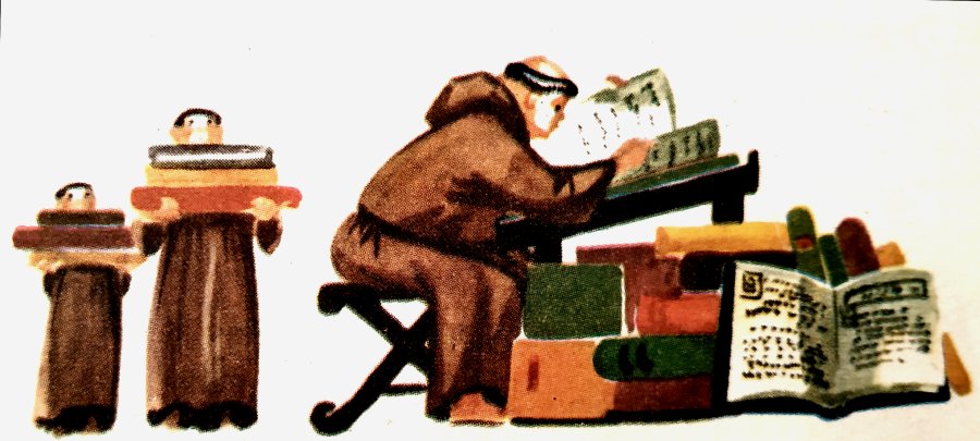 Il ne dit même pas mer­ci… Or, il arri­va qu’un des frères du couvent recon­nut le roi. Il se dépê­cha de pré­ve­nir les autres, qui se pré­ci­pi­tèrent pour saluer Sa Majes­té. Mais le roi, au lieu d’ac­cueillir aima­ble­ment les reli­gieux, se mit en colère et s’a­dres­sant au père prieur lui dit :