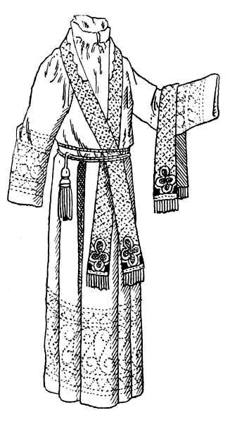 — Un linge blanc, carré, que M. le curé pose sur ses épaules et qu’il attache autour de la taille.