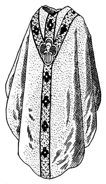 — Autrefois, au commencement de l’Église, les prêtres portaient un large et grand manteau rond, sans manches. C’est ce manteau qui s’est peu à peu modifié, et qui est devenu une chasuble. Elle est l’emblème de la Charité, c’est-à-dire de l’amour qui fait trouver doux et léger le joug du Seigneur. C’est pourquoi la chasuble est presque toujours marquée d’une Croix.