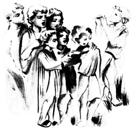 Lorsque les pre­miers pèle­rins pas­sèrent dans les petites rues de Naza­reth, Joseph se joi­gnit aux hommes, Marie aux femmes, et Jésus cou­rut bien vite rejoindre les enfants et les jeunes gens, qui mar­chaient les pre­miers, en chan­tant des cantiques.