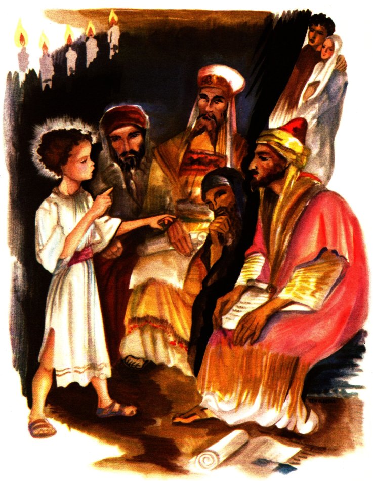 « On dit qu’il y a, auprès des prêtres, un enfant qui les stu­pé­fie par sa science et sa sagesse. Si c’é­tait Jésus ? »