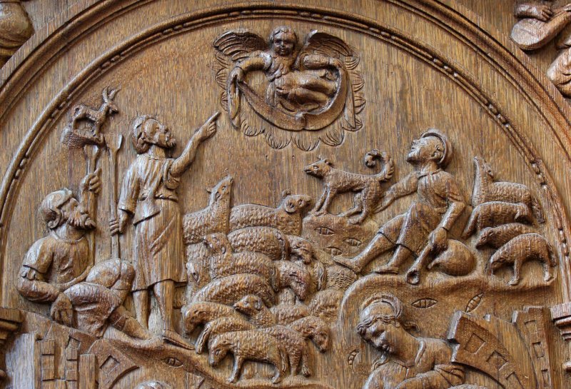 Cette nuit-là apparurent alors les signes qu’il attendait. Le ciel était plus lumineux que d’habitude et au-dessus de Bethléem brillait une belle étoile. Des anges vêtus de lumière proclamaient une joyeuse nouvelle :