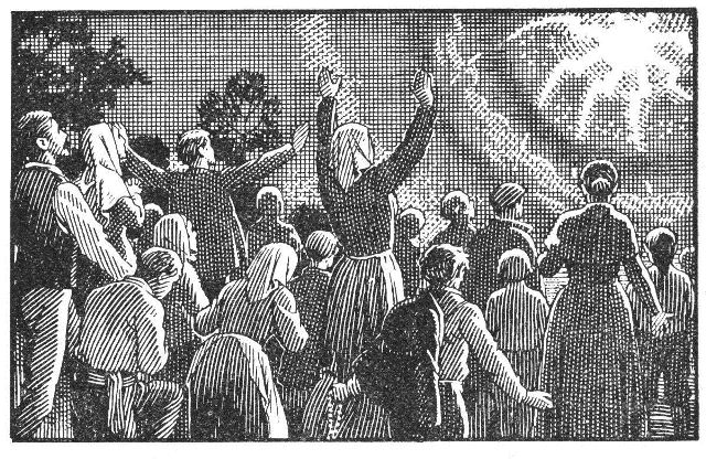 Ils n’ont pas encore com­men­cé qu’un éclair, brus­que­ment, frappe leurs yeux… Sur­pris, tous trois regardent autour d’eux. Pas un nuage ne passe sur le bleu pur du ciel et le soleil brille écla­tant sur la campagne.