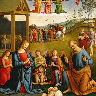 Puis il s’agenouilla et, se prosternant, inclina son visage vers la terre. Les enfants l’imitèrent. L’ange fit, par trois fois, cette prière que les petits répétèrent :