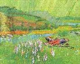 Puis, après avoir béni son lieu de repos, il revint a l’endroit du sacrifice, cueillit respectueusement le blé qui était magnifié pour toujours, et l’emporta précieusement pour le faire transformer en hosties.