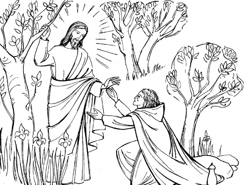 Coloriage de Pâques – Jesus ressuscité apparait à Marie-Madeleine