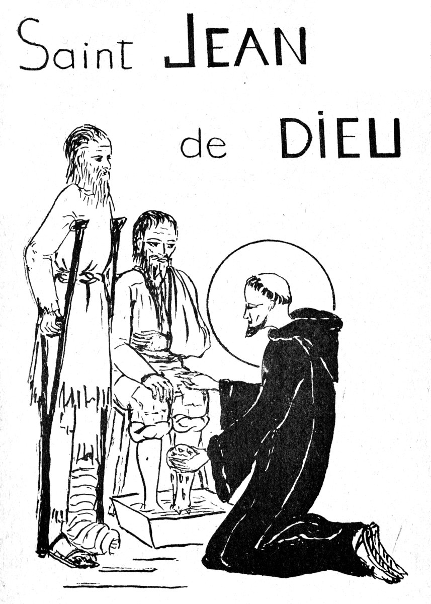 Rentré à Grenade, le premier soin de Joao a été en effet de louer une maison, d’acheter quarante lits avec les aumônes récoltées et la vente de fagots. Puis il est allé chercher les malades. Son premier soin est de leur laver les pieds, de les baiser et de leur dire : « Vous allez recevoir la visite du médecin des âmes (le prêtre), lequel vous guérira, après quoi, soyez sûr que Dieu ne laissera, pas manquer votre corps des soins et remèdes nécessaires… » Et Jean se multiplie à la maison et au dehors : une hotte sur le dos, une marmite à chaque main, il parcourt les rues de Grenade, en criant à haute voix : « Qui veut faire du bien à soi-même ? (La charité nous enrichit pour l’éternité.) Oh ! mes frères pour l’amour de Dieu faites-vous du bien à vous-mêmes ! »