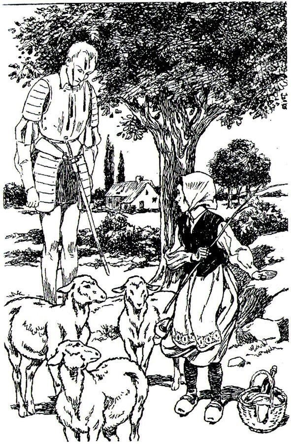 Et voi­ci qu’une fillette, en gar­dant ses mou­tons, eut une étrange et ter­rible vision. Un fan­tôme, dégoû­tant de sang, lui appa­rut pour lui ordon­ner : « Ici, sous cette herbe, est enter­ré un sol­dat de la famille des Régis. Cours, enfant, cours aver­tir ses parents ! »