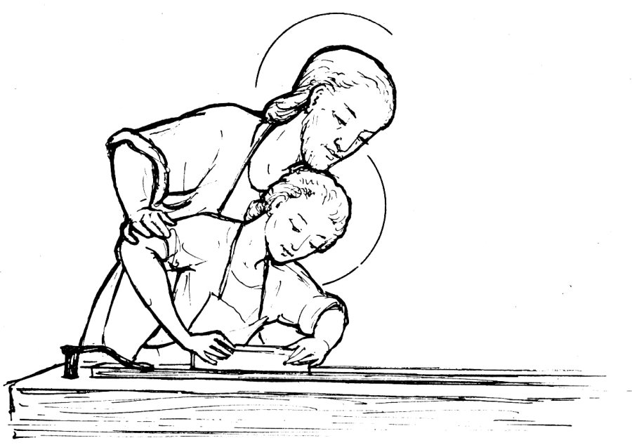 Saint Joseph apprend le métier de charpentier à Jésus