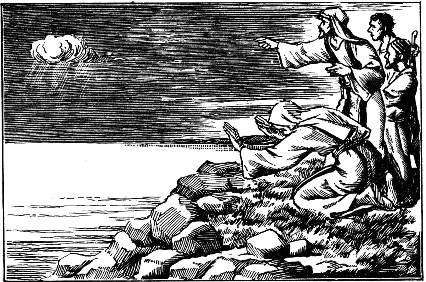 Élie prie pour la pluie du sommet du Mont-Carmel.