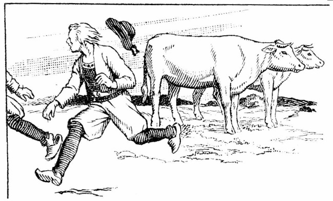 Un soir, Nicolazic s’en va chercher ses bœufs au pré de la fontaine, mais impossible de les conduire à l’abreuvoir, les bêtes refusent d’avancer. Un tel entêtement serait permis à des ânes ; comment l’expliquer chez ces bovins dociles à l’aiguillon ? On sent qu’un obstacle les arrête. Nicolazic aperçoit alors une belle dame toute vêtue de blanc ; — Et quel blanc de neige ! et rayonnant une telle clarté qu’on y voit comme en plein jour. Elle ne dit rien. Saisis, Nicolazic et son beau-frère Jean Leroux se sauvent, quittes à revenir un peu plus tard chercher leurs bêtes qui, cette fois, ne font aucune difficulté pour s’abreuver et rentrer à l’étable.