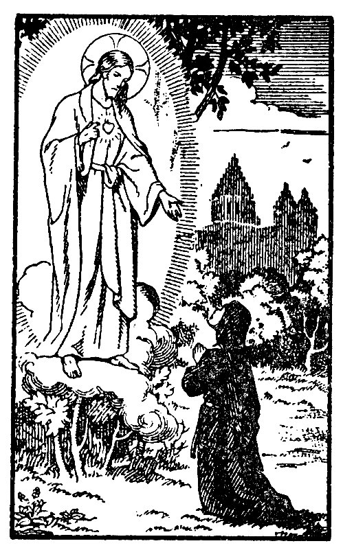 Mais les visites de Notre-Seigneur, Ses paroles, avaient si fortement ému Marguerite-Marie, qu’elle tomba gravement malade. Sa Supérieure lui ordonna de demander à Dieu sa guérison : ce serait le signe que ces choses extraordinaires venaient de lui. Marguerite-Marie obéit, et la Sainte Vierge lui apparut, lui promettant de lui rendre la santé de la part de son divin Fils, car elle aurait encore beaucoup à souffrir. « Mais ne crains rien, ajouta Marie, Je ne t’abandonne pas et Je te prends sous Ma protection. »