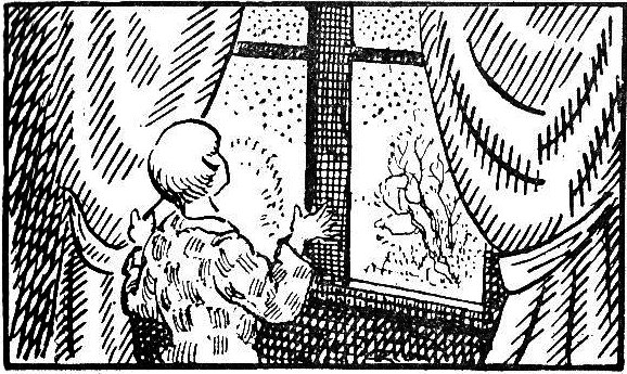 Comme Gilbert reste en extase à la fenêtre, une chaussette d’une main et son peigne dans l’autre, maman, qui est toute prête à partir pour la messe, menace de ne pas l’emmener. Agnès, heureusement, est toute prête, elle aussi, et en deux temps, trois mouvements, elle chausse, débarbouille, coiffe et habille le petit rêveur.